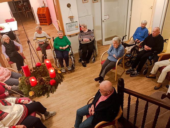 Bewohnerinnen und Bewohner lauschen den Klängen des Hatzfelder Chores