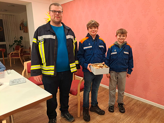 Die Schwarzenauer Jugendfeuerwehr überreicht selbstgebackene Kekse